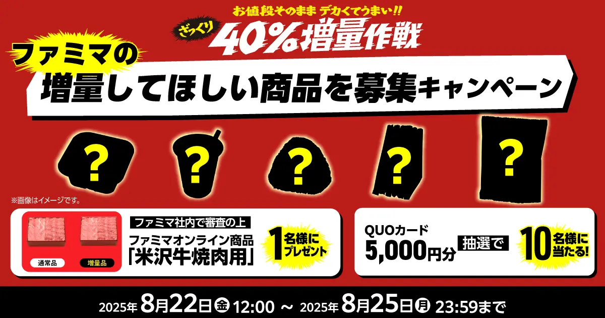 【キャンペーンは終了しました】ファミマの増量してほしい商品を募集キャンペーン